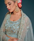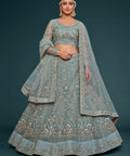 Ocean Aqua Graceful Wedding wear Heavy Lehenga Choli for Women with Dupatta in USA Sequence Lehenga Choli