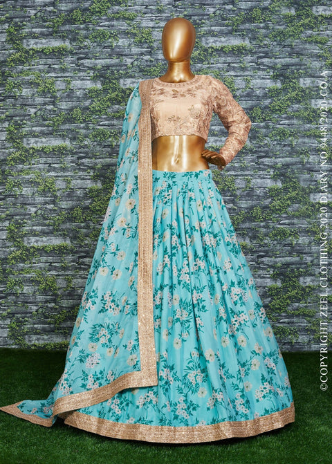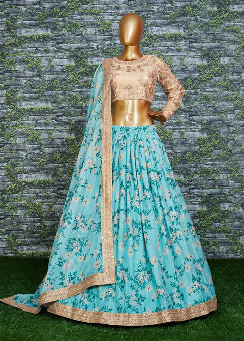 Blue Lovely georgette Sabyasachi Floral Lehenga Choli For Wedding Wear For Women In USA