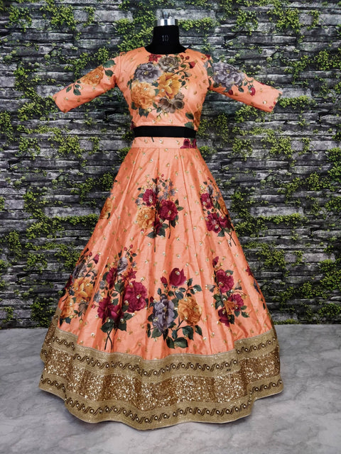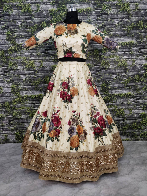 Gorgeous colourful lehenga featured escapade of florals Digital Print lehenga choli for women in USA