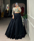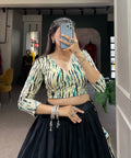 Black Gorgeous Cotton Plain Lehenga Paired with Printed Blouse – Your Go-To Festive Co-Ord Set For Woman