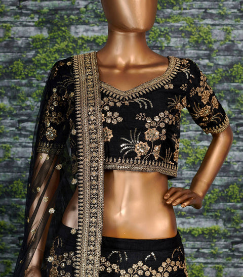Black Wedding wear Heavy Lehenga Choli for Women with Dupatta Sequence Lehenga Choli In USA