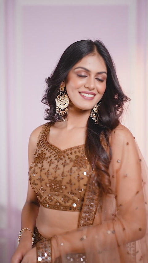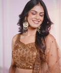 Brown Party wear Heavy Lehenga Choli for Women with Dupatta Sequence Lehenga Choli In USA
