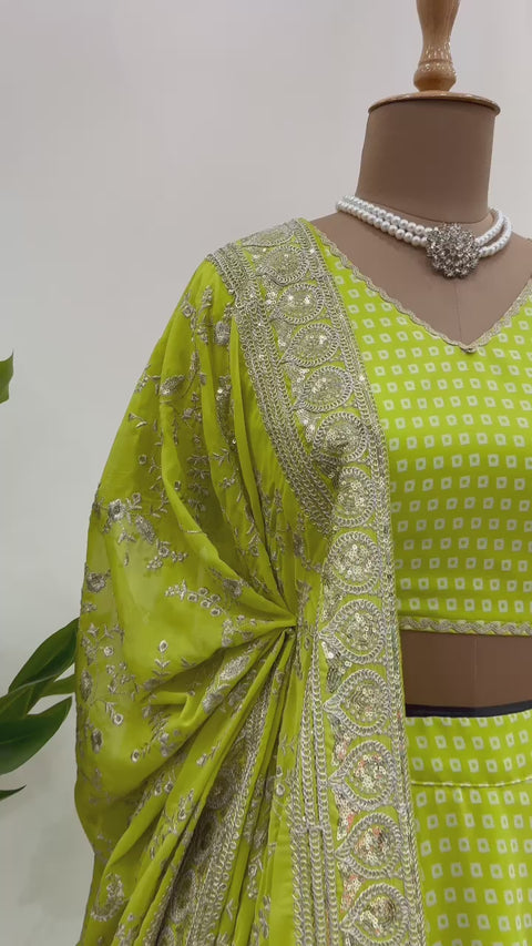 Green Gorgeous Wedding Wear Heavy Lehenga Choli for Women with Dupatta Sequence Lehenga Choli For Women