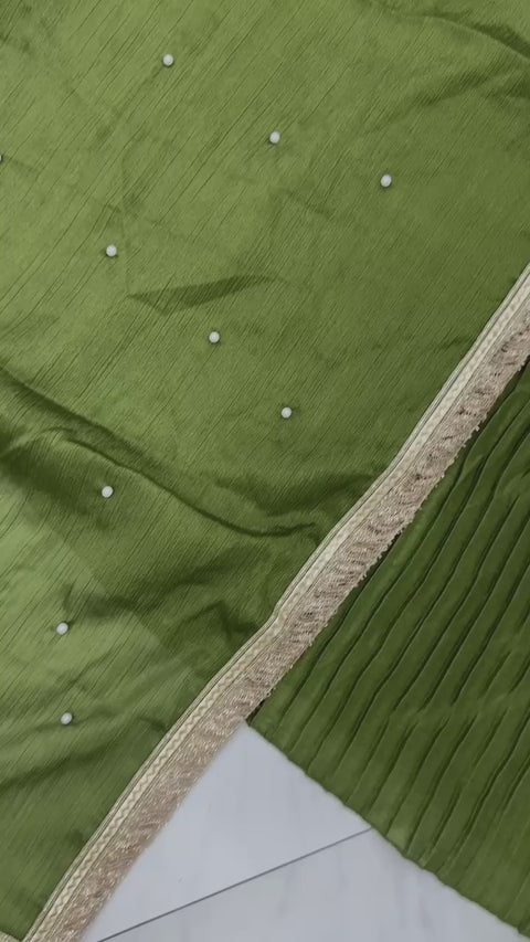Dupatta Fabric :Pur Chinon Silk With Rivet Moti Work With Four Side Fancy Lace Bodar