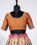 A Semi-stitched lehenga means that the pattern of the lehenga is ready and only the fitting of the lehenga as per your waist and height(waist to floor) has to be done. The lehenga is ready to be stitch to your desired size. The blouse(Top/Choli) of lehenga is an un-stitched patterned fabric.