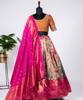Pink stunning and intricate pattu stitched lehenga choli set For Women