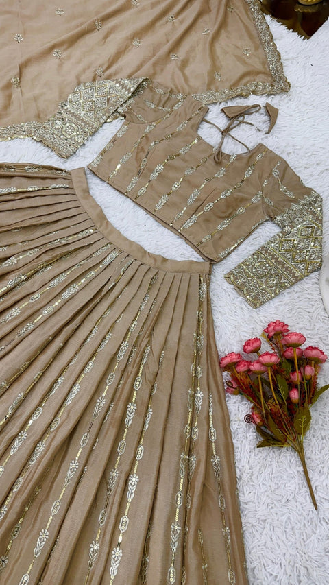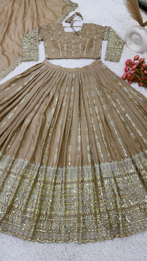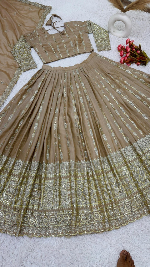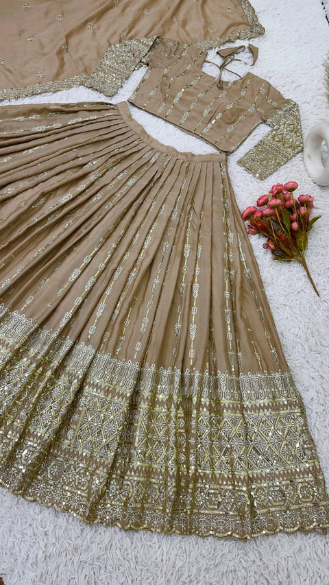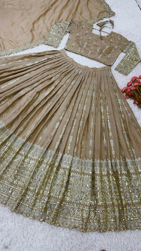 Presenting New Gold Wedding Collection Lehenga Choli With Full Heavy Embroidery Sequence Work For Woman