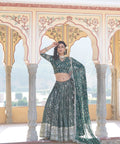 Green Designer Pure Viscose Jacquard fabric Lehenga Choli & Dupatta Set For Women
