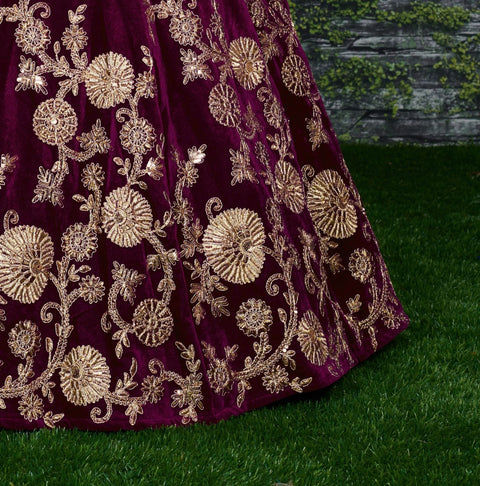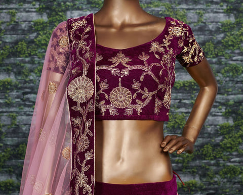 A Semi-stitched lehenga means that the pattern of the lehenga is ready and only the fitting of the lehenga as per your waist and height(waist to floor) has to be done. The lehenga is ready to be stitch to your desired size. The blouse(Top/Choli) of lehenga is an un-stitched patterned fabric.