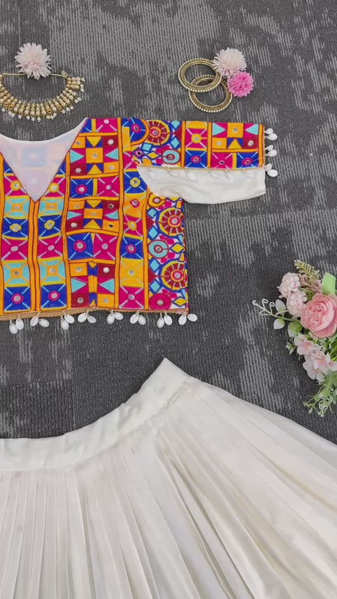 White Elegant Rayon New Navratri Collection Lehenga Choli With Full Heavy Embroidery Sequence Work Lehenga choli For Women
